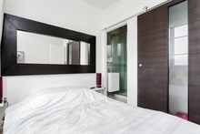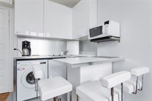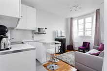 D'une surface de 23 m2, le Saint Placide dévoile un séjour design aux tons gris et blancs offrant une vue sans vis-à-vis sur le dôme des Invalides, le Sacré Coeur avec sa Basilique Saint Pierre mais aussi le Grand Palais et l'Arc de Triomphe. Détendez-vous dans le canapé convertible en face de la TV à écran plat avec Internet en wifi. La cuisine américaine est entièrement équipée pour vous restaurer sur place autour de l'espace dînatoire composée de ses chaises de bar. La chambre dispose d'un lit double avec sa TV privative et d'un grand placard de rangements pour vos effets personnels. Accessible depuis la chambre, la salle de douche est moderne avec WC séparés pour garantir une intimité parfaite aux occupants.