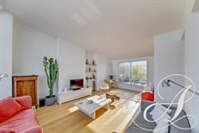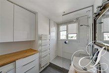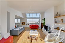 D'une surface de 77 m², L'appartement "Au 9ème ciel" porte bien son nom : il s'ouvre sur une pièce à vivre claire et lumineuse avec une grande fenêtre donnant sur les toits de Paris. Le salon bénéficie de deux canapés permettant de se reposer après une journée de détente ou de rendez-vous professionnels avec la TV à écran plat dotée d'Internet en wifi. La table à manger vous permettra de vous restaurer sur place grâce à une cuisine entièrement équipée et séparée. Idéal pour 2 personnes souhaitant avoir une vue imprenable sur tout Paris, ce bien dispose d'une spacieuse chambre double avec de nombreux rangements pour vos effets personnels. Profitez également du soleil parisien grâce aux deux terrasses plein Sud aménagées avec vue sur la Tour Montparnasse. Une belle salle d'eau avec douche à l'italienne complète ce bien de standing.