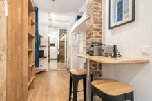 Sur une surface de 19m2, l'appartement parfaitement agencé vous offre jusqu'à 4 couchages, puisqu'il dispose d'un espace en mezzanine avec un lit double au-dessus du salon. La cuisine, ouverte sur le séjour, et entièrement équipée. Le salon dispose d'un canapé convertible pour 2 personnes. Entièrement refait à neuf, ce studio vous offre tout le confort pour votre séjour de courte ou moyenne durée. Donnant sur une petite cour, le Nemo est très calme tout en bénéficiant d'un emplacement idéal dans un quartier très recherché.