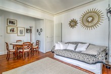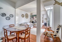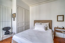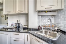 Sur une surface de 46 m², l’appartement Lalande donne sur la cour de l'immeuble donc du côté calme. Il est composé d’un spacieux salon / sale à manger très lumineux puisque nous sommes au 6ème et dernier étage de l'immeuble, avec de belles prestations, parquet, cheminée, un joli canapé et une décoration raffinée. L'espace salle à manger est semi-séparé et dispose d'un grand placard de rangement / dressing. La chambre séparée est elle aussi ornée d'une magnifique cheminée, dispose d'un lit 140x190cm et d'un grand placard de rangement. La cuisine est séparée et très bien équipée avec un joli plan de travail, un lave-vaisselle et de nombreux matériels pour cuisiner sur place. Une jolie salle d'eau avec douche et toilettes complète ce bien lumineux, soigné et raffiné. Situé au 6ème étage avec ascenseur d'un magnifique immeuble parisien, cet appartement vous charmera par une décoration contemporaine et le charme d'un appartement parisien, le tout équipé d'Internet en Wifi.