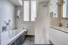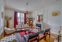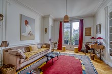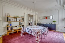 D'une surface de 165 m2, Récamier possède tous les atouts des nobles appartements parisiens avec moulures au plafond et parquet ancien. Le double salon offre un espace de détente appréciable après une journée de visites ou de rencontres professionnelles. La salle à manger dispose d'une table conviviale pour vous restaurer sur place en famille ou entre amis avec une cuisine indépendante entièrement équipée. Ce bien se compose de deux chambres : la masterbedroom avec une salle de bains attenante et des rangements pour vos effets personnels et une seconde chambre modulable avec deux lits simples et une salle de douche moderne.