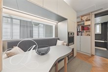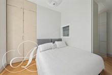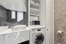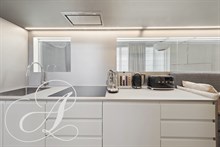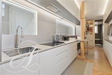 D'une surface de 84 m2, cet appartement offre un ameublement sur mesure et une décoration soignée pour un séjour d'exception dans la ville la plus romantique au monde. Les finitions sont de haute qualité, offrant une atmosphère luxueuse et élégante. Disponible à la location en bail mobilité, l’appartement dispose de deux chambres, idéal pour accueillir jusqu'à 4 personnes. Les chambres sont confortables et la décoration y est également très soignée. La salle de bain de l'appartement est équipée d'une douche ainsi que d'une baignoire pour profiter d'un moment de relaxation après une journée de travail bien remplie. Le salon quant à lui est spacieux et lumineux avec des fenêtres donnant sur la cour de l’immeuble. La cuisine entièrement équipée offre toutes les commodités nécessaires, lave-vaisselle, machine à café Nespresso ou encore une cave à vin. Grâce à une connexion internet haut débit, vous pourrez animer ou assister à vos réunions en toute tranquillité.