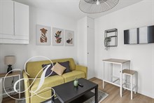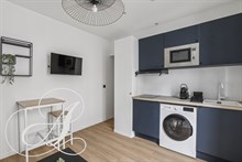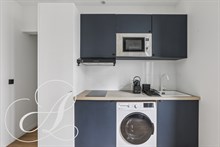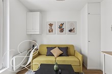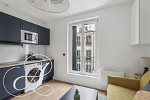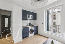 Situé au 1er étage d'un immeuble entièrement refait à neuf et sécurisé par digicode, ce studio de 16 m2 illustre parfaitement l'optimisation de l'espace parisien. Il comprend un espace de vie principal astucieusement aménagé combinant coin nuit et salon, une kitchenette équipée intégrée, et une salle de douche compacte avec WC. Chaque centimètre carré a été pensé pour allier fonctionnalité et esthétique. L'appartement est équipé d'une machine à laver, d'une connexion internet haut débit et de tous les équipements essentiels pour un séjour confortable. La situation sur cour assure calme et tranquillité. Toutes les charges sont incluses dans le loyer (électricité, internet, charges de copropriété).